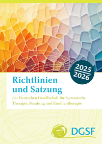 Die Broschüre "Richtlinien und Satzung" wurde kürzlich in der aktualisierten Fassung veröffentlicht. In diesem Heft sind u. a. die DGSF-Weiterbildungsrichtlinien, die Richtlinien über Weiterbildungsinstitute und ihre Akkreditierung, die Ethik-Richtlinien, "Qualitätskriterien zur Praxis der aufsuchenden systemisch-orientierten Erziehungshilfen in Familien: Aufsuchende Familientherapie und Sozialpädagogische Familienhilfe", Qualitätskriterien zu "DGSF-empfohlenen systemisch-familienorientiert arbeitenden Einrichtungen" sowie die Satzung, Wahlordnung und Beitragsordnung zusammengestellt.