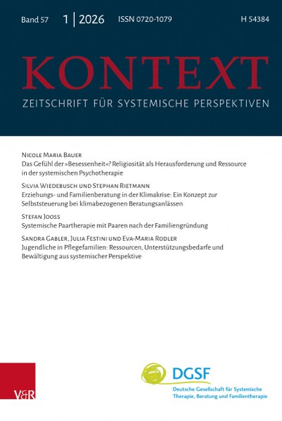 Einen bunten Blumenstrauß an Themen bieten die Herausgeberinnen der Zeitschrift KONTEXT ihrer Leserschaft in der neuesten Ausgabe 1/2026, die kürzlich erschienen ist. Die Beiträge widmen sich bspw. der Religiosität als Herausforderung im Therapiekontext, der Klimakrise, der Paartherapie nach der Familiengründung oder auch Jugendlichen in Pflegefamilien.