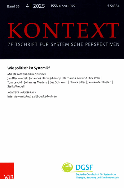 In Zeiten globaler Krisen und zunehmender Polarisierung stellt sich die Frage: Soll und muss sich ein systemischer Verband politisch positionieren? Oder bleibt die systemische Profession neutral, offen für diverse Perspektiven? Die Ausgabe 4/2025 der Verbandszeitschrift Kontext ist ein Debattenheft, das zur Auseinandersetzung mit diesen und weiteren Fragen einlädt.