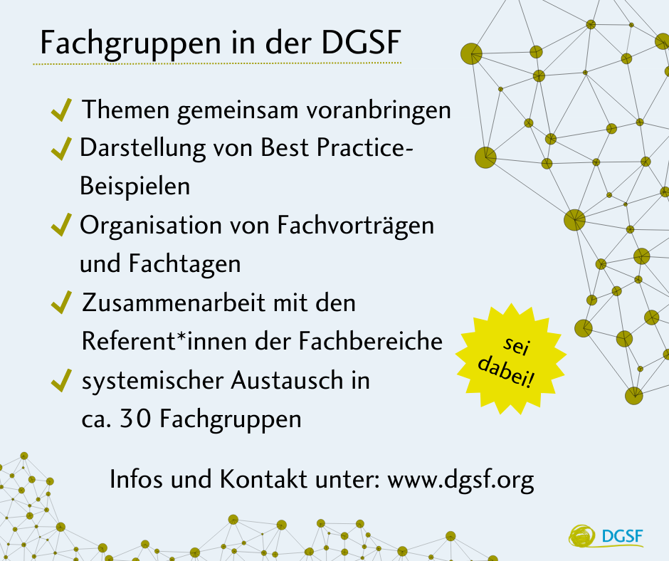 Fachgruppentermine finden Sie im DGSF-Terminkalender